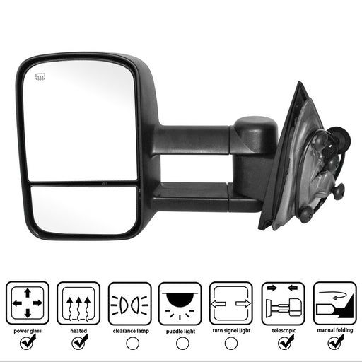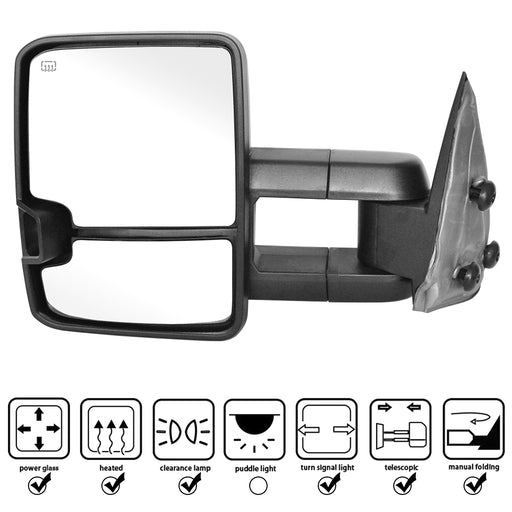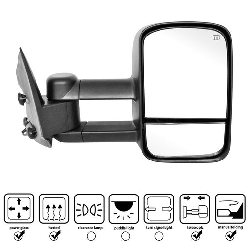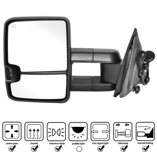 Perfit Zone Power Heated Without Signal Lamp Textured Black Towing Tow Telescoping Extendable Foldable Side View Dual Glass Mirrors Pair Set Fits 2007-2014 Silverado Suburban Sierra Yukon Truck SUV