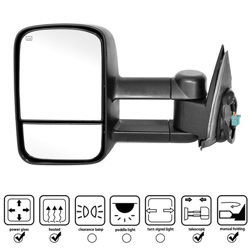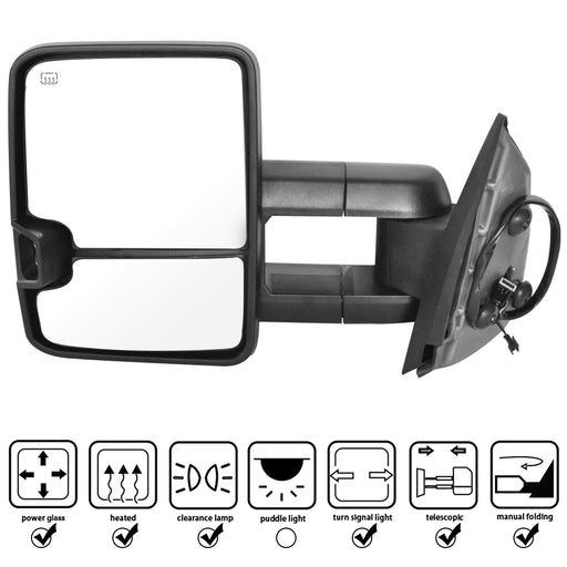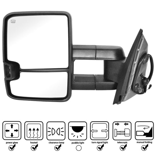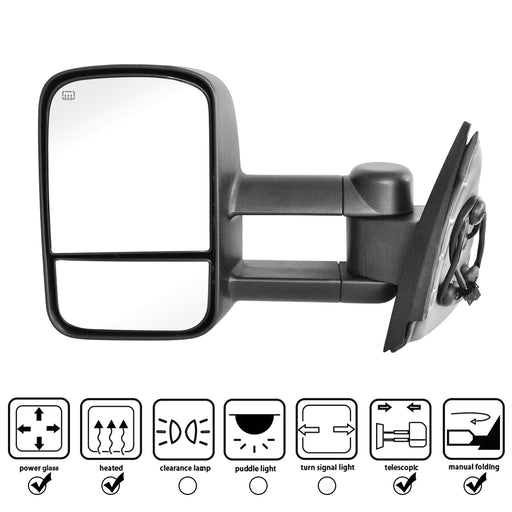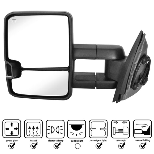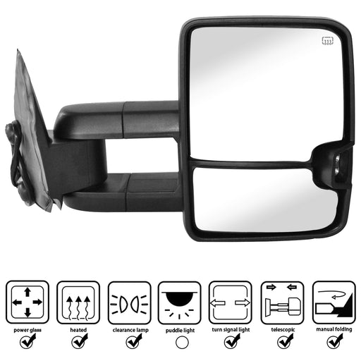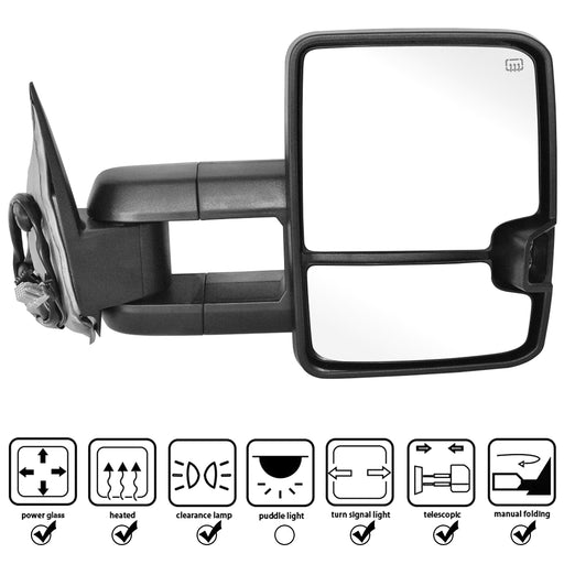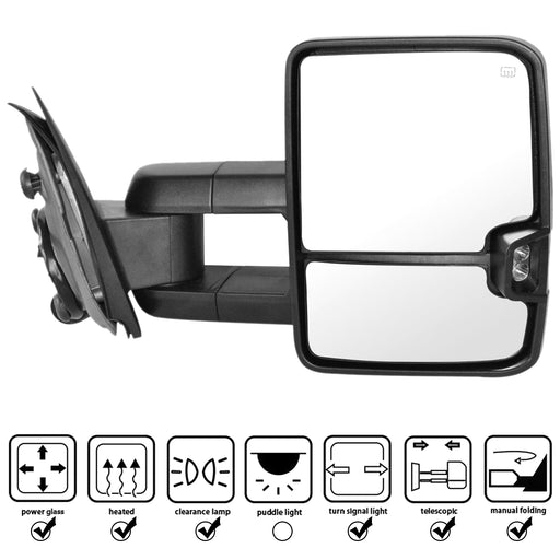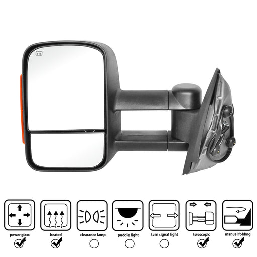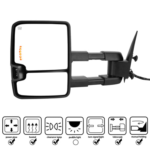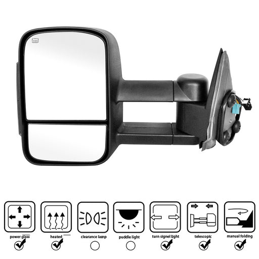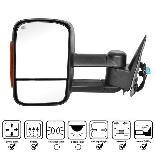 Perfit Zone Towing Mirrors Replacement Fit for 2007-2014 SILVEADO SIERRA Series, W/HEATED,W/AMBER SIGNAL,BLACK (PAIR SET)