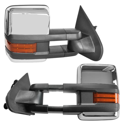 JEILF Towing Mirror 2003 2004 2005 2006 Siverado Extending Towing Power Heated w/Amber LED Signal Mirrors Left + Right Pair.Chrome Housing